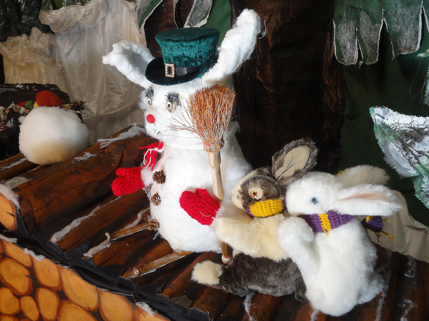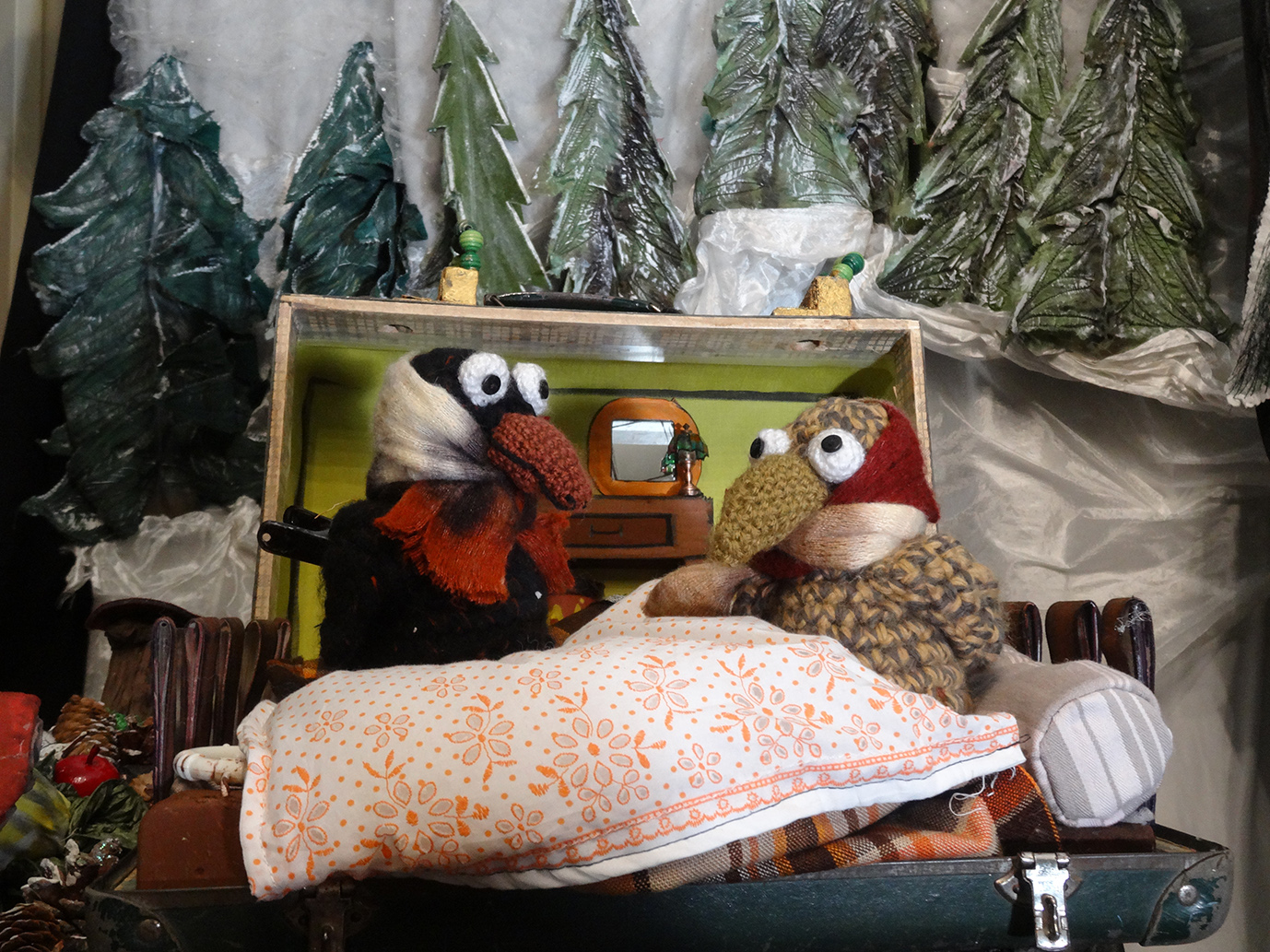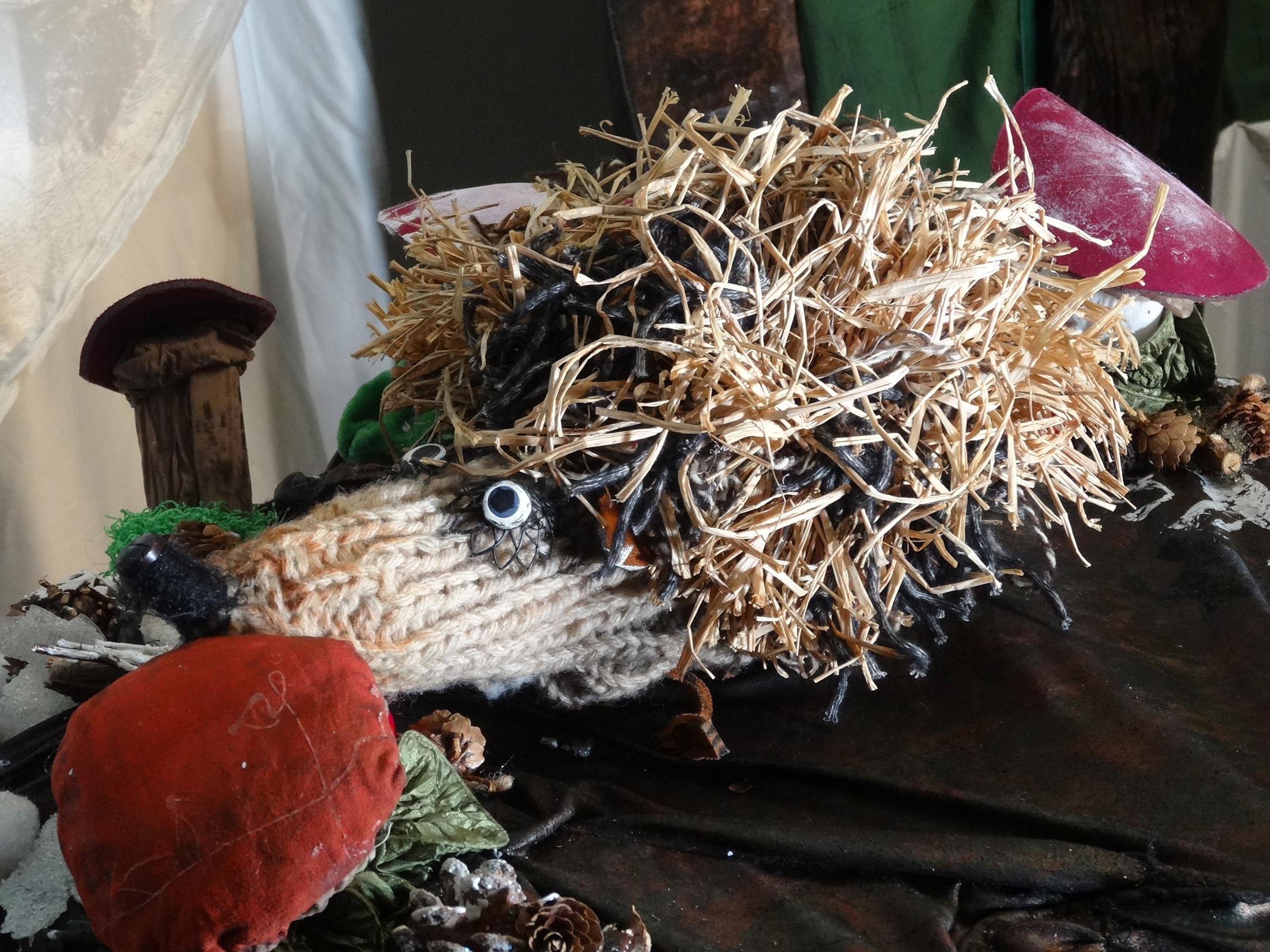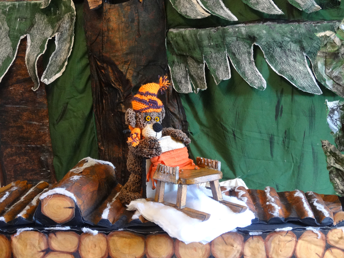 Le tout petit est d’emblée plongé dans l’atmosphère et les sensations de la saison hivernale : - Le décor fait de différents matériaux textiles lui parle du froid, du blanc, du dénuement de la nature… -Les marionnettes pour la plupart tricotées en laine lui évoquent la sensation du chaud. - Le texte où le vocabulaire choisi, les comptines et chansons, viennent mettre en relief les sensations propres à l’hiver. |